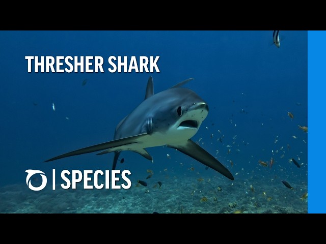 Thresher sharks use their long, whip-like tails to stun prey. Learn more in our Marine Life Encyclopedia: Marine Life Encyclopedia.
