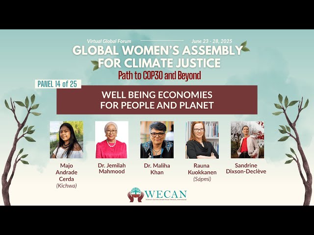 The Global Women’s Assembly for Climate Justice: Path to COP30 and Beyond, hosted virtually by the Women’s Earth and Climate Network (WECAN) from June 23-28, 2025, convened over 125 grassroots and frontline women leaders, global advocates, and policymakers from 50 countries. This forum featured 25 unique panels showcasing diverse visions, projects, and strategies to accelerate a transformative path to a healthy and just world, with interpretation available in English, Spanish, French, and Portuguese.