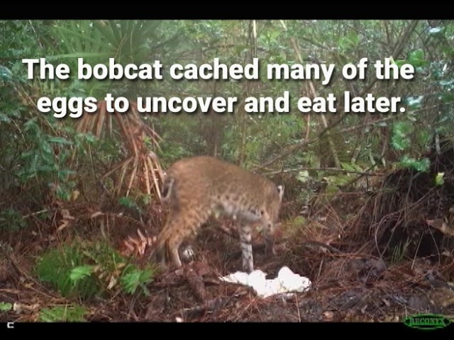 However, new remote camera footage offers a glimmer of hope. It shows a bobcat consuming as many as 42 python eggs, with evidence of more being saved for later. The camera even captured a direct confrontation between the bobcat and the nesting python.