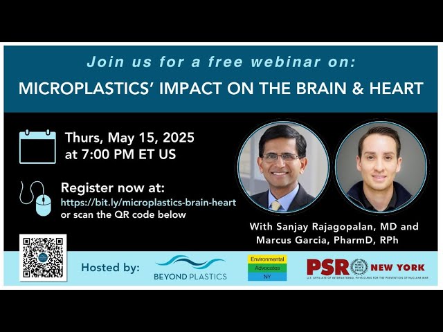 Join Beyond Plastics, Physicians for Social Responsibility - NYS, and Environmental Advocates of New York for a free webinar addressing these critical questions. Dr. Sanjay Rajagopalan and Marcus Garcia, PharmD, RPh, co-authors of recent groundbreaking studies on microplastics in the heart and brain, will present their findings.